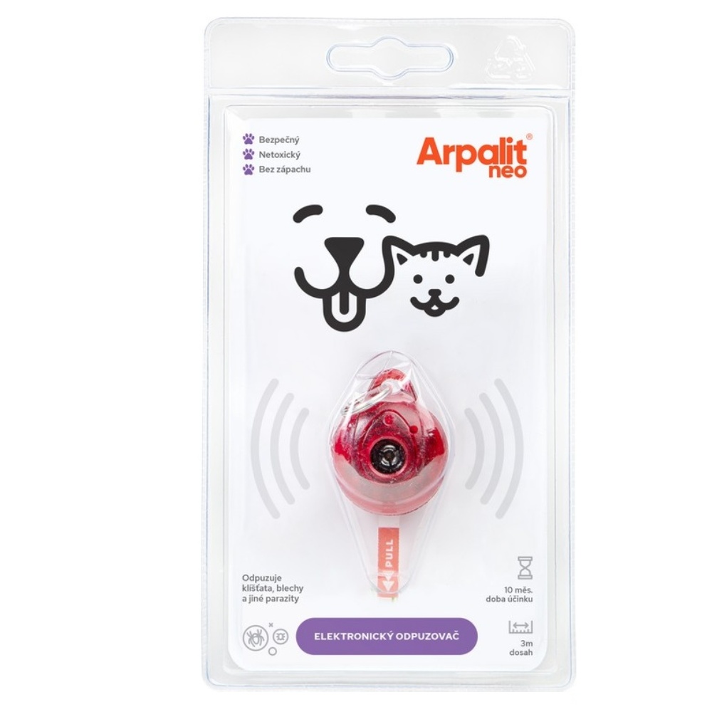 Po nasazení elektronického repelentu na obojek zvířete se sníží výskyt parazitů v závislosti na počátečním zamoření zvířete. K výraznému snížení výskytu parazitů dochází po 7 dnech od nasazení elektronického repelentu. - U zvířat s významným výskytem parazitů se doporučuje, zejména v počáteční fázi vysokého zamoření parazity, zkombinovat elektronický repelent s antiparazitárními přípravky (Arpalit Neo® sprej, mechanický rozprašovač, pěna). Po 35 dnech od nasazení se (obvykle) na těle zvířete parazité nevyskytují. Tento stav setrvává po dobu účinnosti elektronického repelentu 10 měsíců od první aktivace.