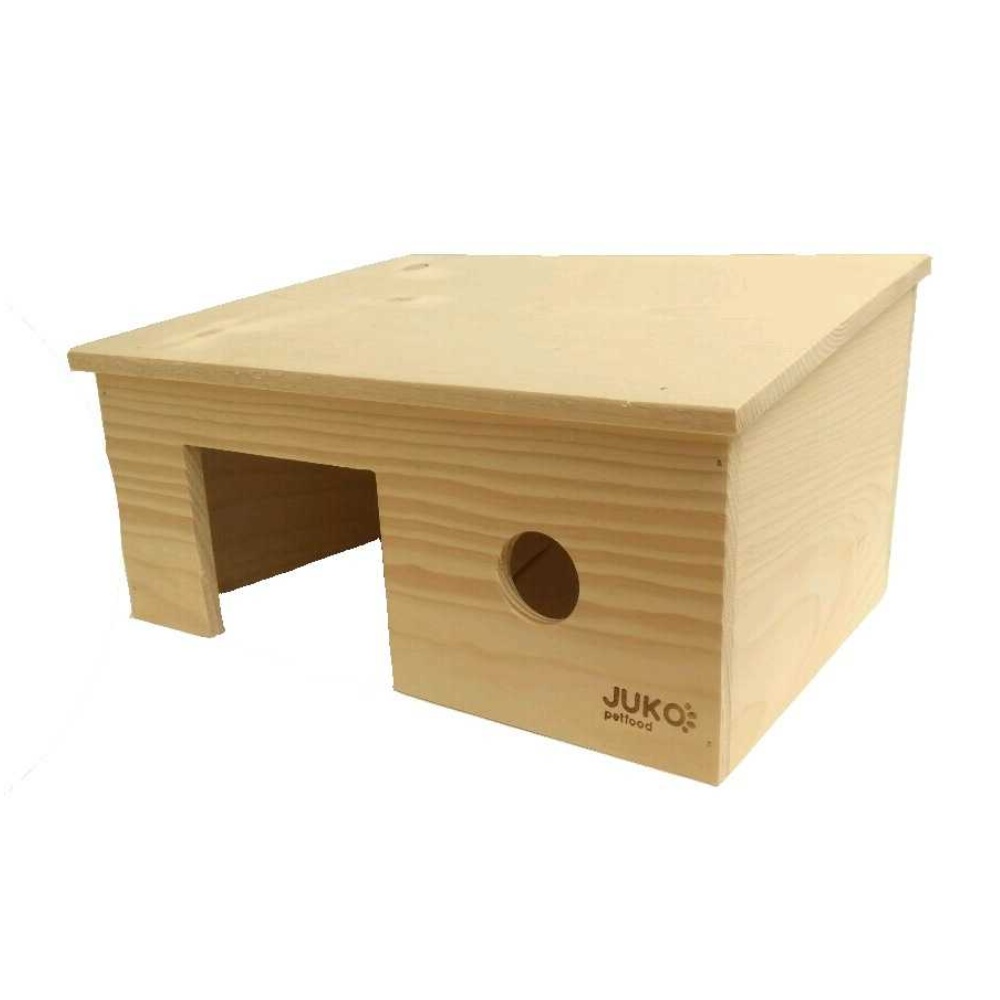 Domeček s šikmou střechou která lépa navozuje lépe pocit skutečného domu. Sklon není velký, zvířátko ji tedy i přesto může používat.