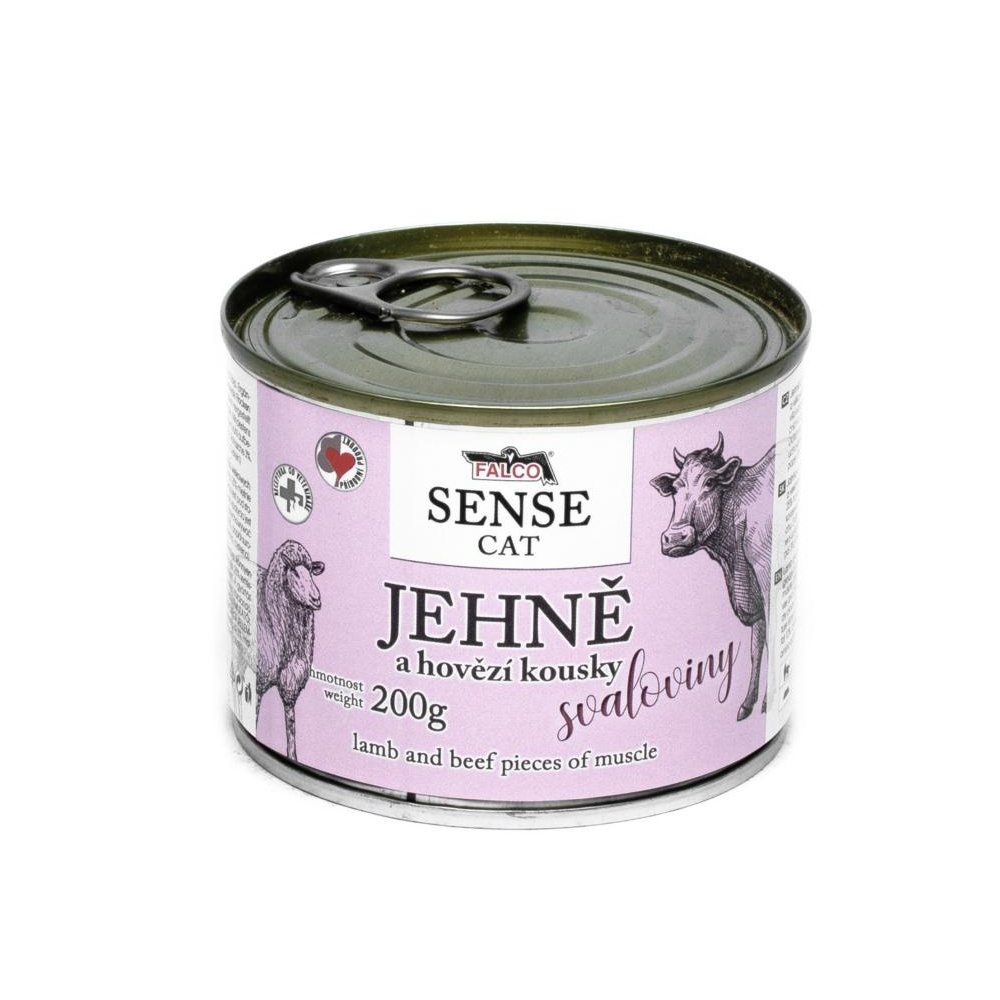 FALCO SENSE Cat jehně a hovězí kousky svaloviny, konzerva 200 gSkladem50 Kč