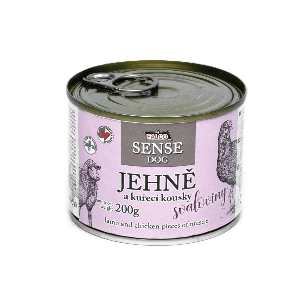 FALCO SENSE Dog jehně a kuřecí kousky svaloviny, konzerva 200 g