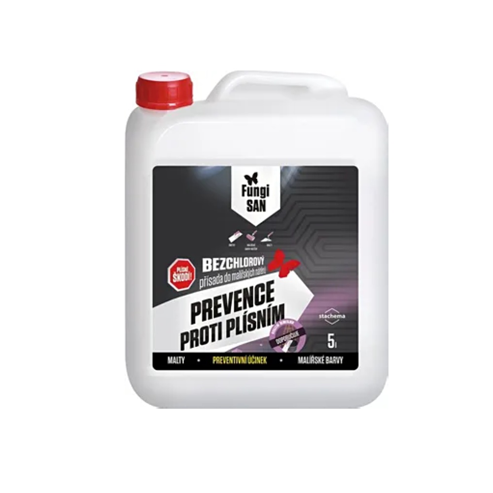 Návod k použití: Plíseň před aplikací neodstraňujte! Napadená místa postříkejte přípravky na likvidaci plísní FungiSPRAY chlorový nebo FungiSPRAY bezchlorový, výrobce STACHEMA CZ. Při silném napadení plísní je nutno postup opakovat. Aplikujte nátěrem nebo postřikem na suchý očištěný povrch (viz tabulka). Při silném napadení proveďte první nátěr 5% vodným roztokem a po zaschnutí aplikujte nátěr (viz tabulka). Vydatnost: Z 1 kg koncentrátu se ošetří cca 50 - 100 m2 plochy podle vydatnosti použité nátěrové hmoty (malířské nátěry).