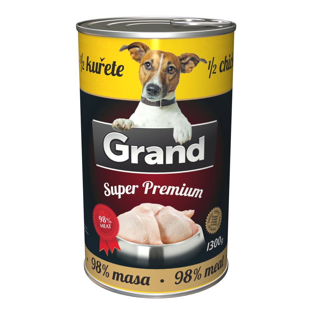 - GRAND Superpremium Dog kuřecí s 1/2 kuřete, konzerva 1300 g- 4ks