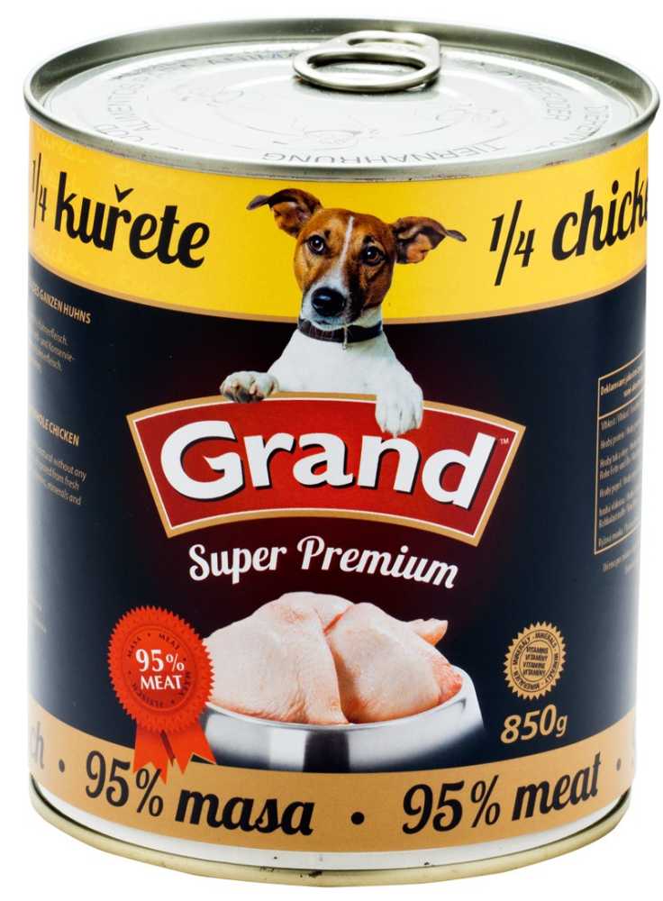 - GRAND Superpremium Dog kuřecí s 1/4 kuřete, konzerva 850 g