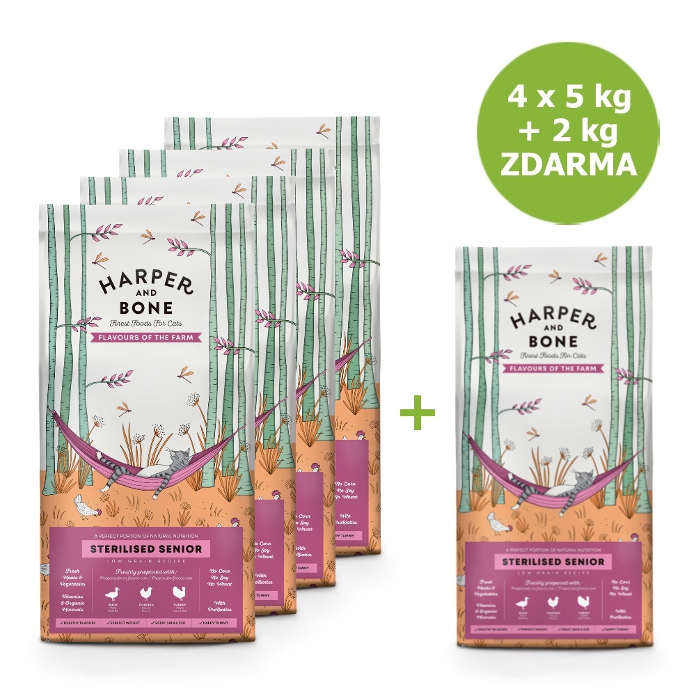 Harper and Bone Cat Senior Sterilised příchutě farmy AKCE 4 x 5 kg + 2 kg ZDARMASkladem3 082 Kč