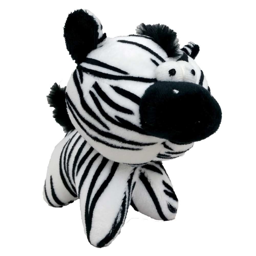 Plyšová zebra pro psy je vyplněna měkkým vláknem, díky menším výstupkům je snadno přenosná i pro menší rasy psů.