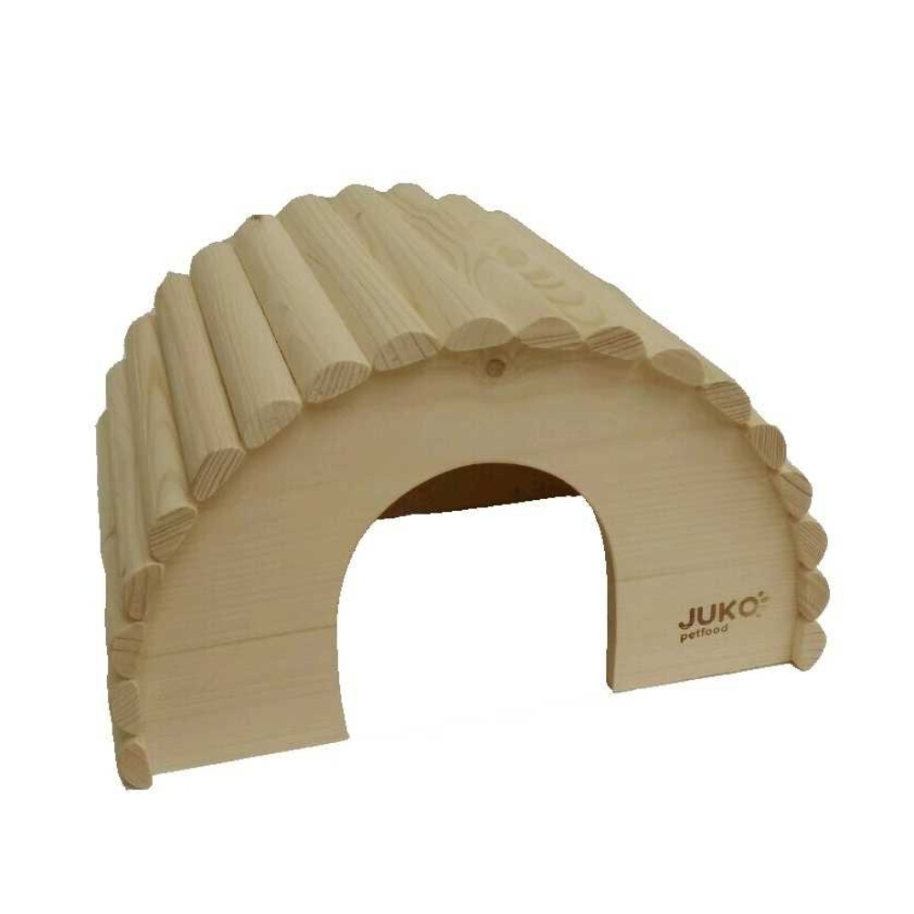 Dřevěný domeček veliký akorát tak pro pohodlný odpočinek králíka nebo hlodavce v podobné velikosti.