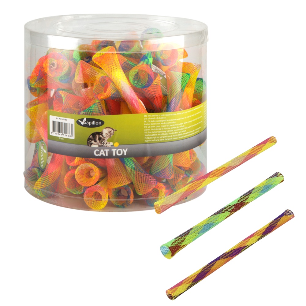 Plastová interaktivní pružinová tuba s catnipem pro kočky.