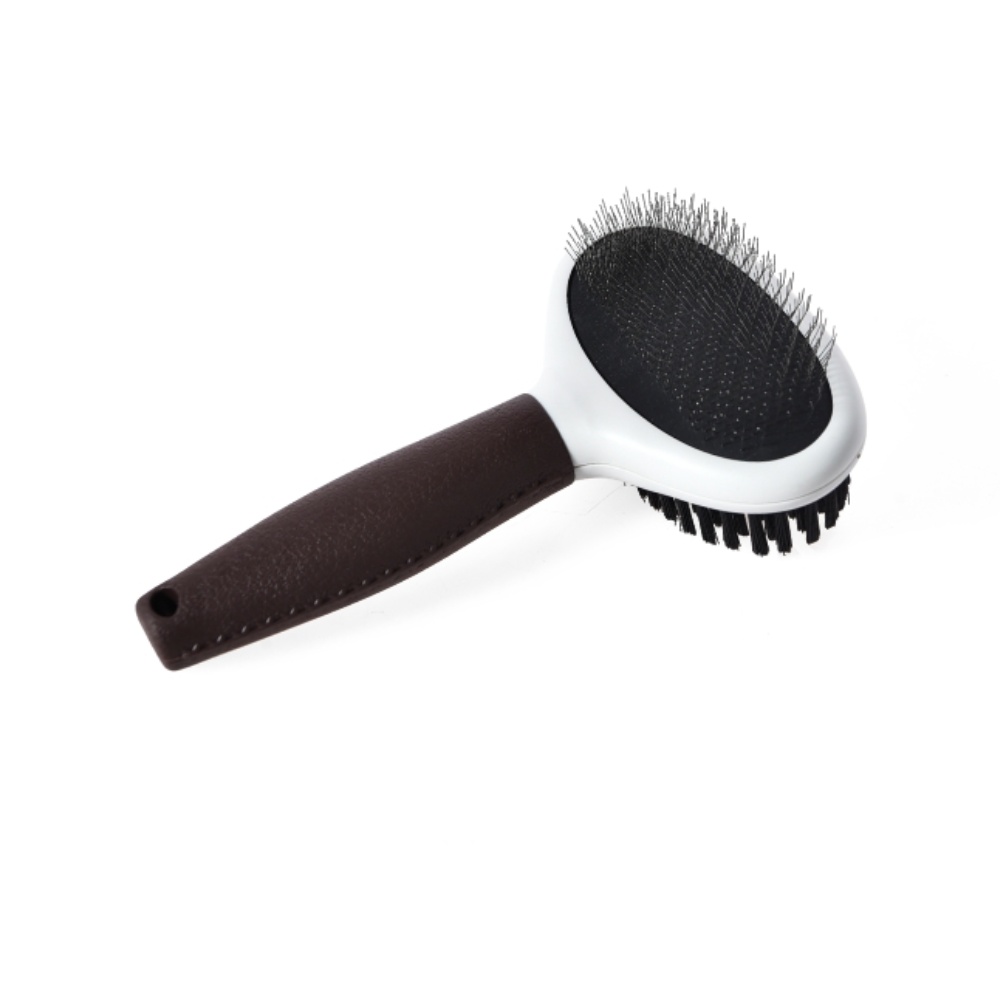 Oválný oboustranný kartáč s jemnými zuby je vhodný pro všechny typy srsti je ideální pro každodenní čištění.