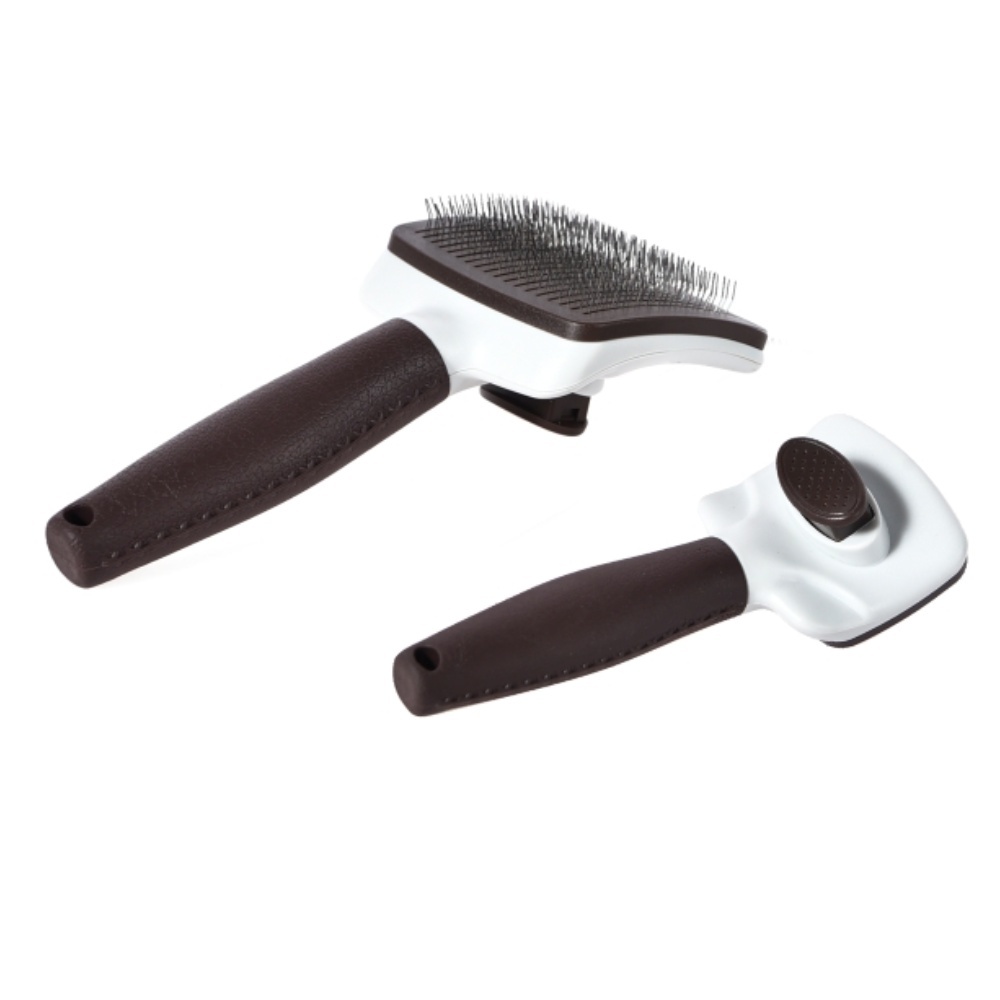 Ideální pro všechny typy srsti. Protiskluzová rukojeť z termoplastické gumy v designu imitace kůže.