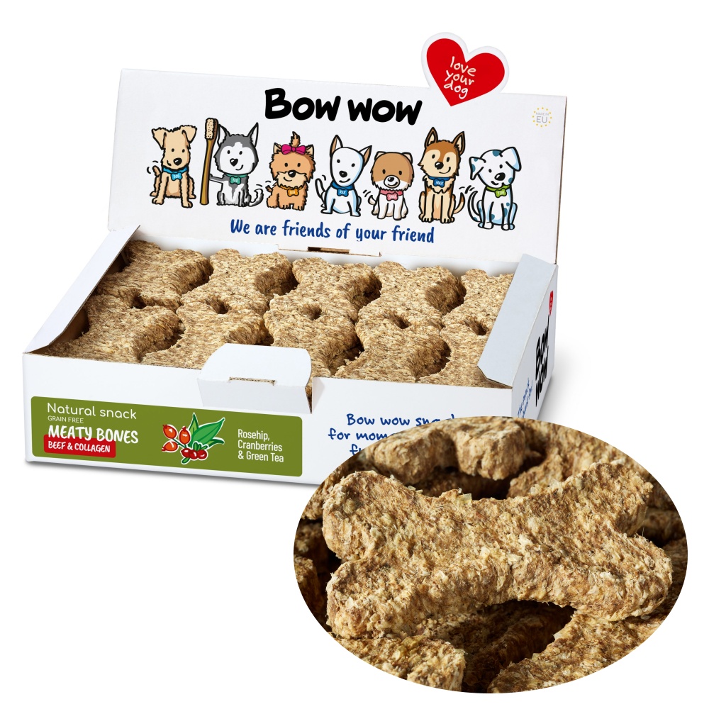 Masové kosti bez obilovin obohacené o šípek, brusinky a zelený čaj. Přírodní konzervanty a vysoký obsah kolagenu.