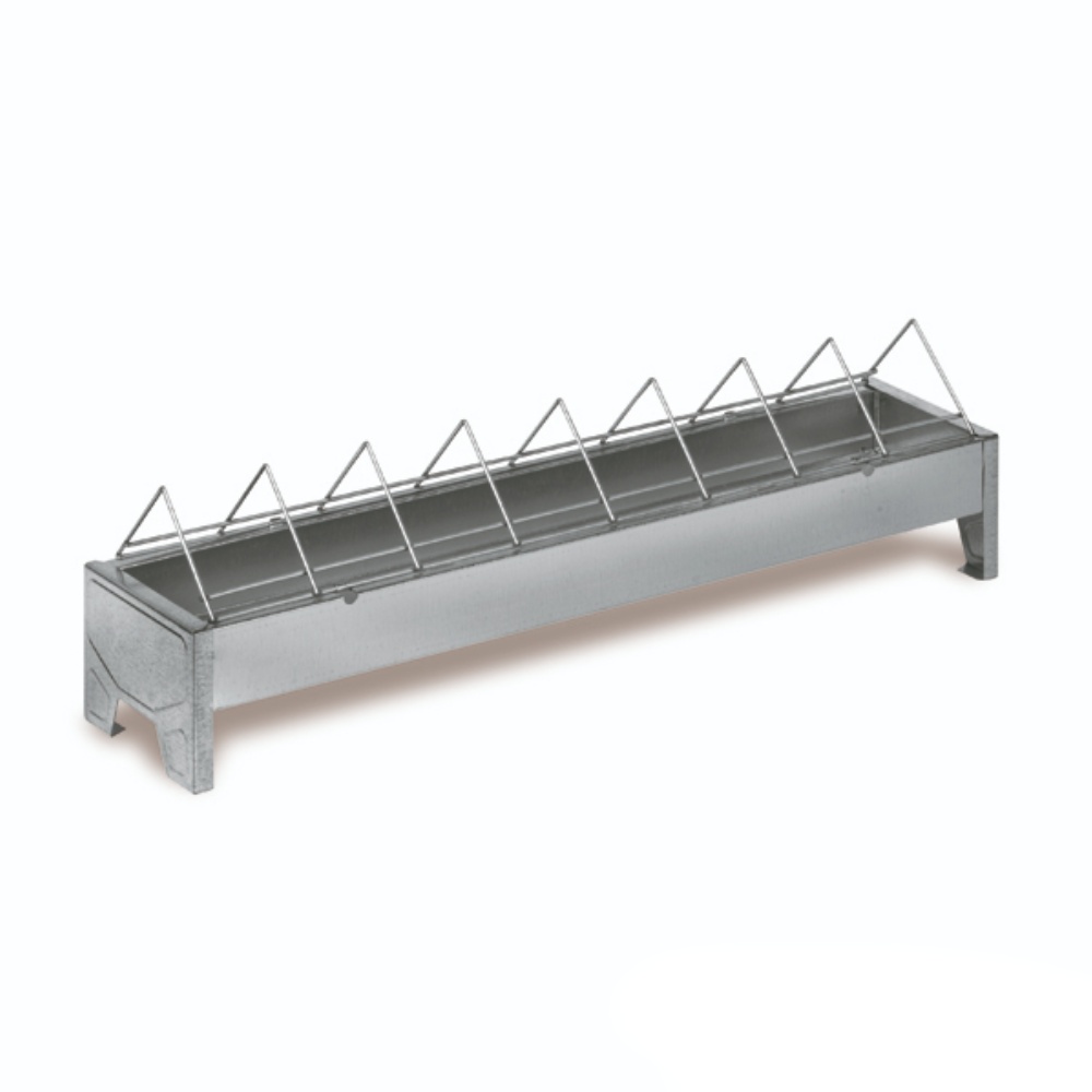 Kvalitní kovové krmítko s širokými příčkami pro kuřata, slepice, křepelky a jinou drůbež.