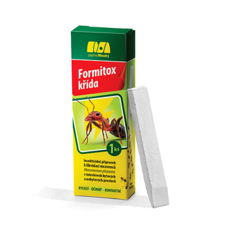FORMITOX křída je účinný přípravek proti mravencům, kteří často pronikají zvenku do vnitřních prostor budov. Vhodné použití na porézní nebo tvrdé povrchy v interiérech bytových a nebytových prostorů.