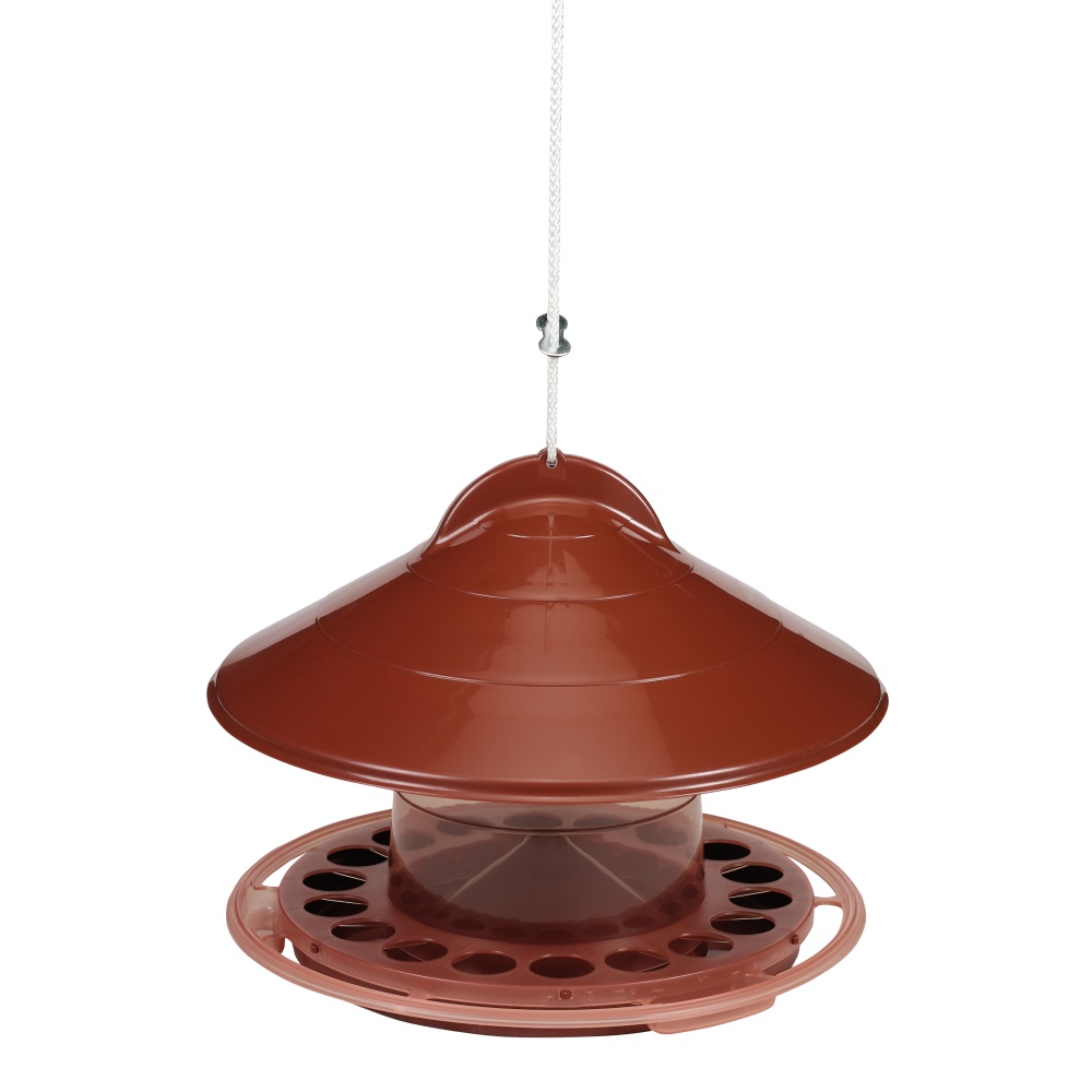 Závěsné krmítko pro ptáčky s ochranou proti dešti.
