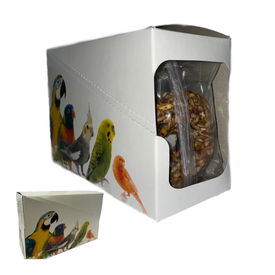 Ovocná: pšenice, kukuřice, oves, slunečnicová semínka, sušené ovoce.