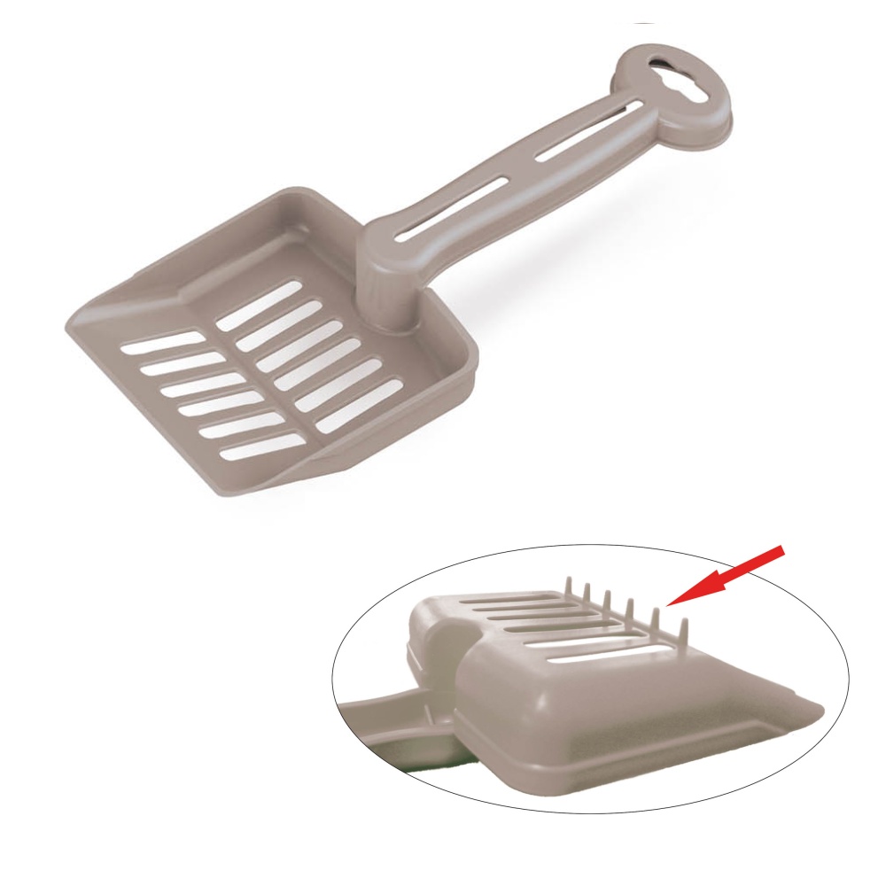 Praktická děrovaná lopatkapro snadné oddělení exkrementů od steliva. Na rukojeti otvor pro zavěšení.