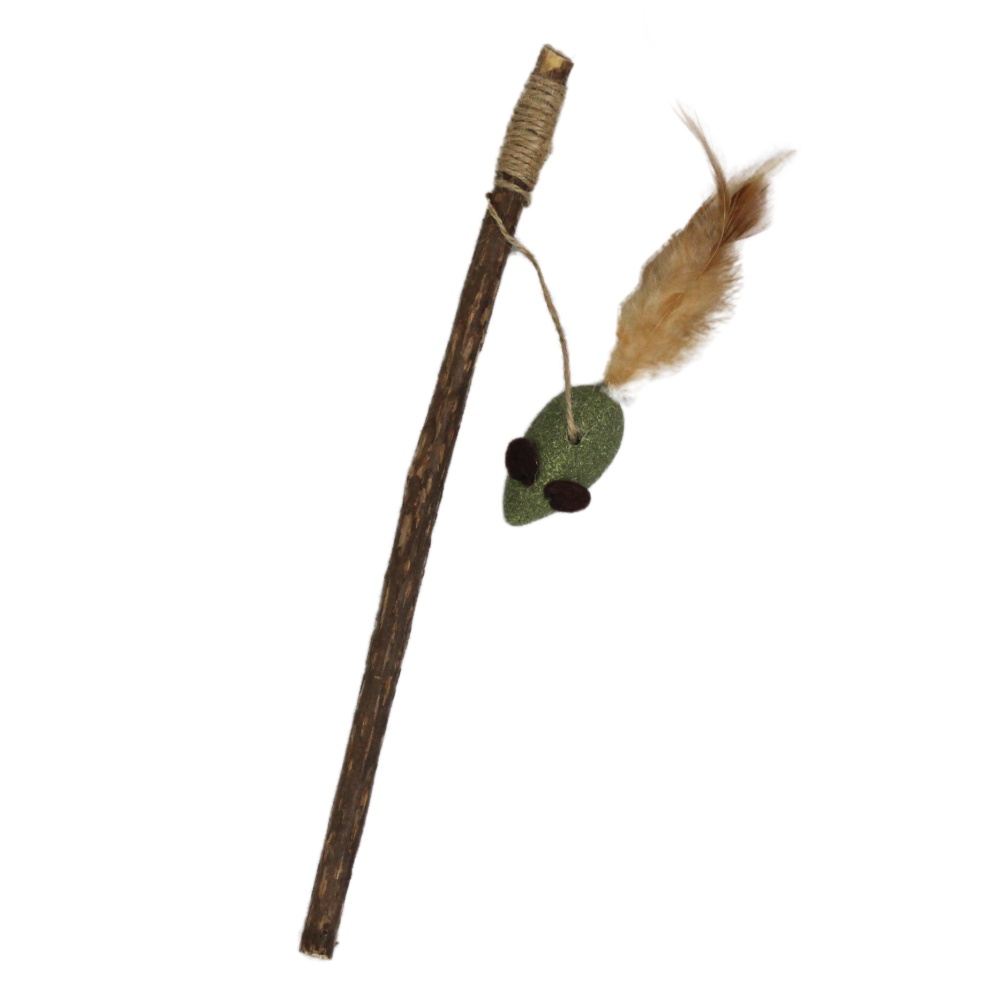 Dřevěný prut s přírodní hračkou dokonale imituje rybaření a probudí v kočce instinkty.