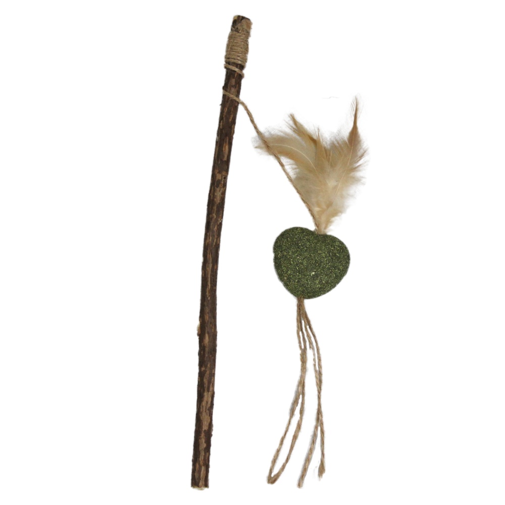 Dřevěný prut s přírodní hračkou dokonale imituje rybaření a probudí v kočce instinkty.