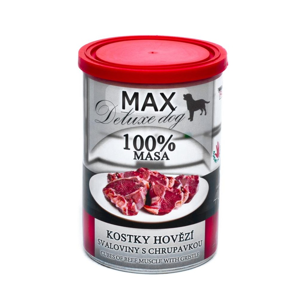 - MAX Deluxe Dog kostky hovězí svaloviny s chrupavkou, konzerva 400 g