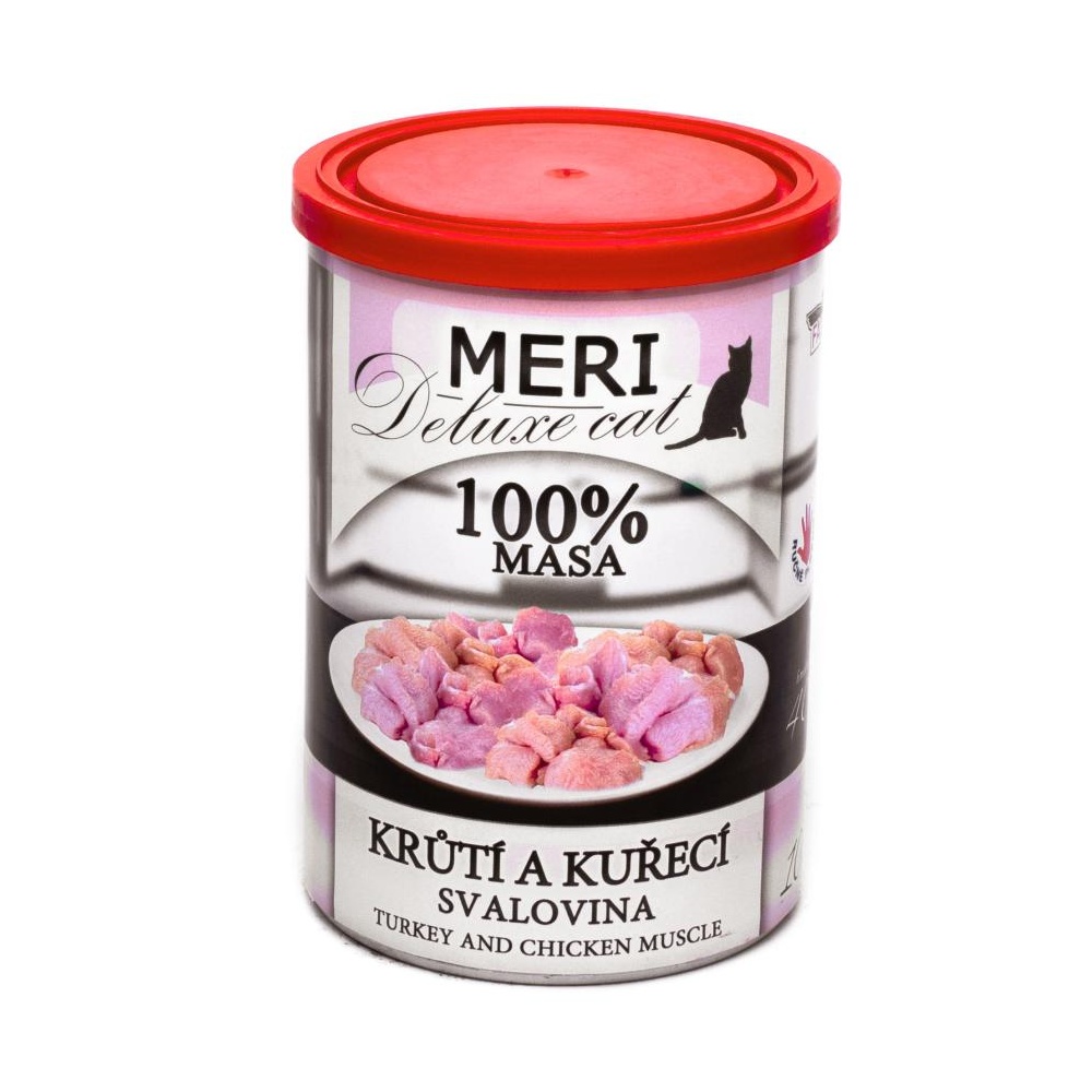 - MERI Deluxe Cat krůtí a kuřecí svalovina, konzerva 400 g