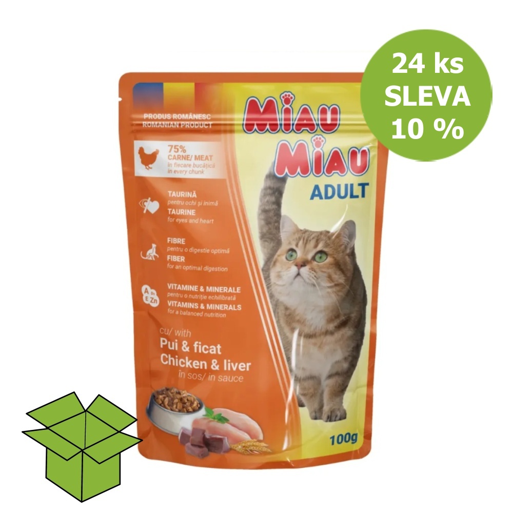 - Miau Miau Cat kuřecí a játra, kapsa 100 g (24 ks) SLEVA 10 %