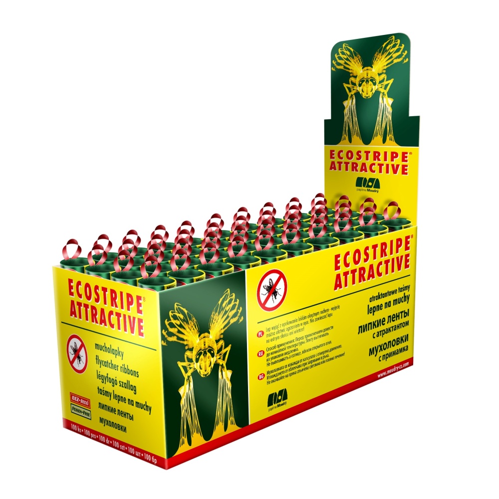 Lepový pás Ecostripe Attractive má díky své délce a šířce největší účinnou plochu na světě. Délka je důležitým parametrem účinnosti, protože je zjištěno, že mouchy nalétávají na mucholapku zespodu. Tento jev je možné pozorovat na použitých mucholapkách, kde je pás vždy plnější ve spodní části.