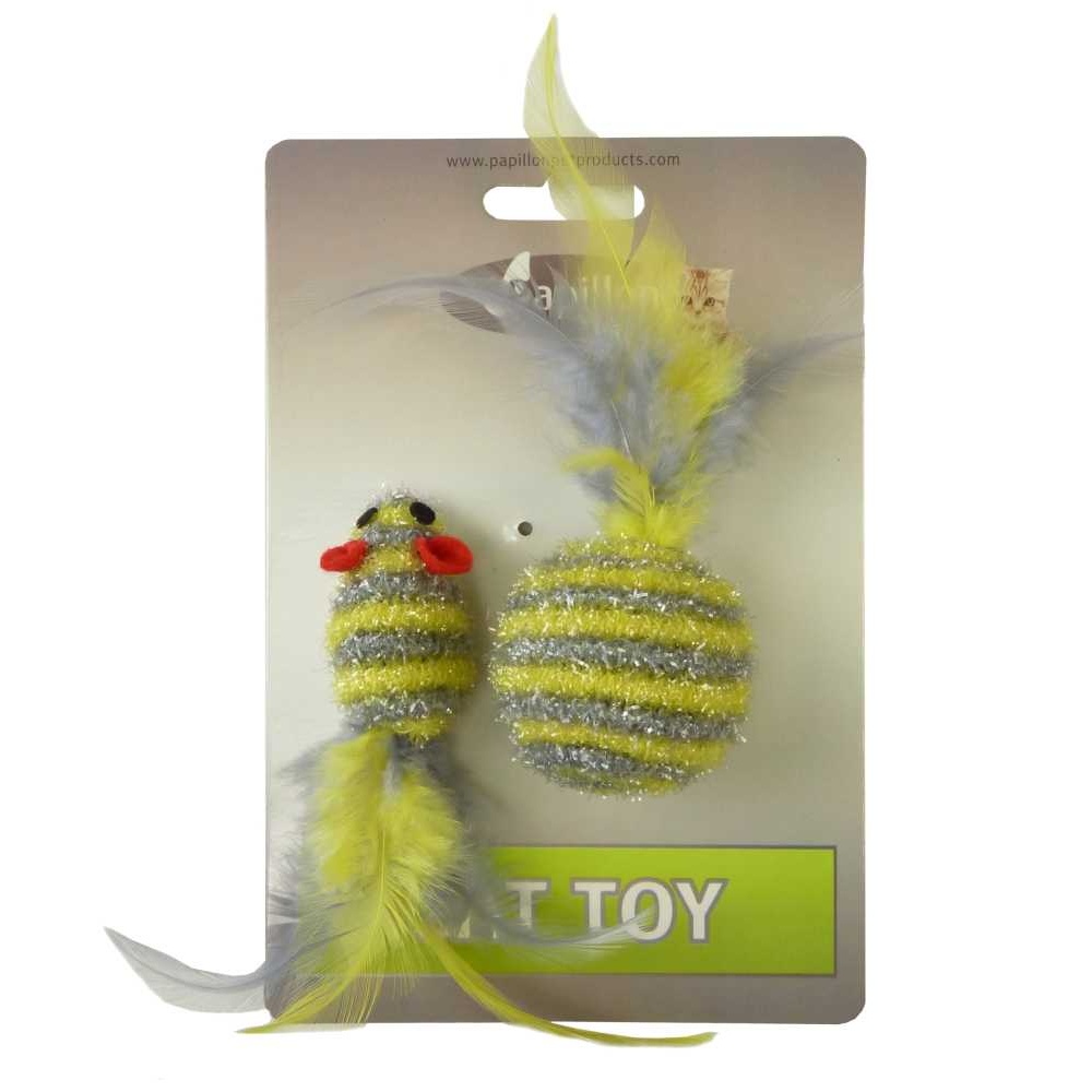 Myš a míček s peřím zlato-stříbrná pruhy třpyt