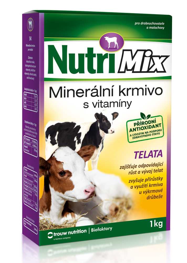 Vitamíno-minerální směs NUTRI MIX je určena pro telata do stáří 6 měsíců. Obsahuje biologicky účinné látky, vitaminy a minerální látky ve vysoce využitelné formě. Tato směs umožňuje chovatelům dokompletovat krmnou dávku a doplnit vitamíny a minerální látky na potřebnou úroveň. Podporuje dobrý stav a obranyschopnost organismu, zajišťuje úspěšný odchov a výkrm telat.