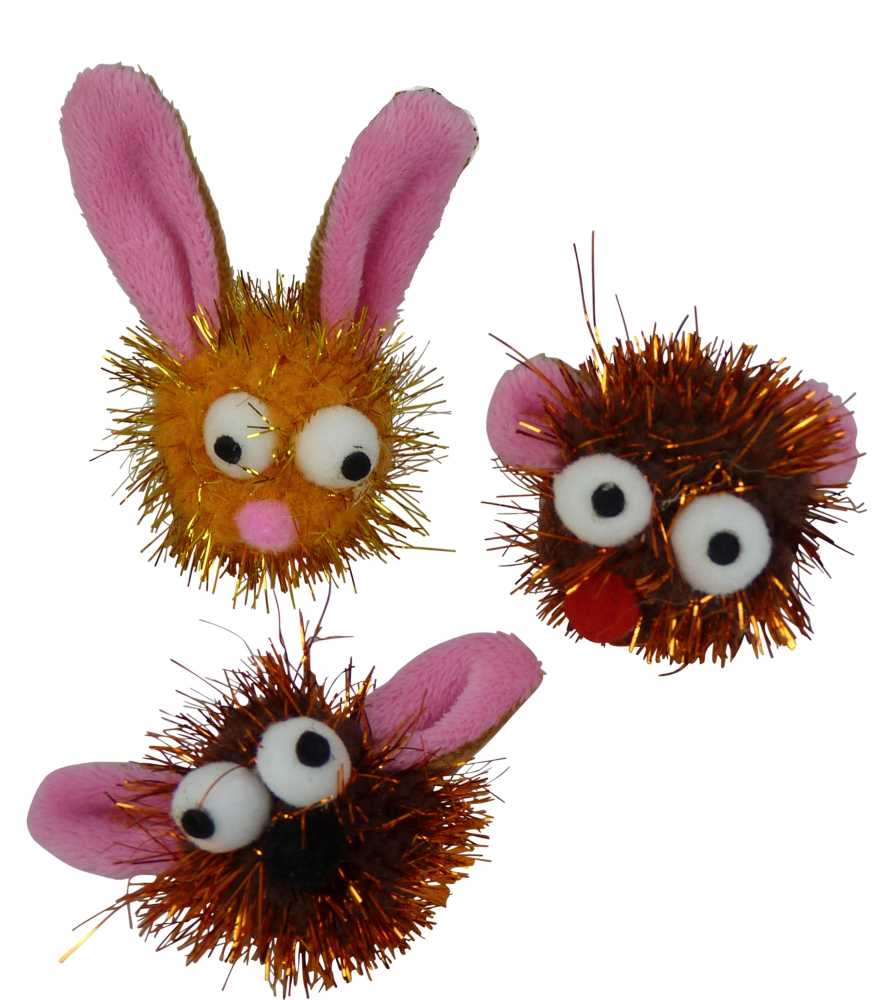legrační obličej s ušima - měkká hračka pro kočky, snadno zaujme díky odrážení světla na vláknech.