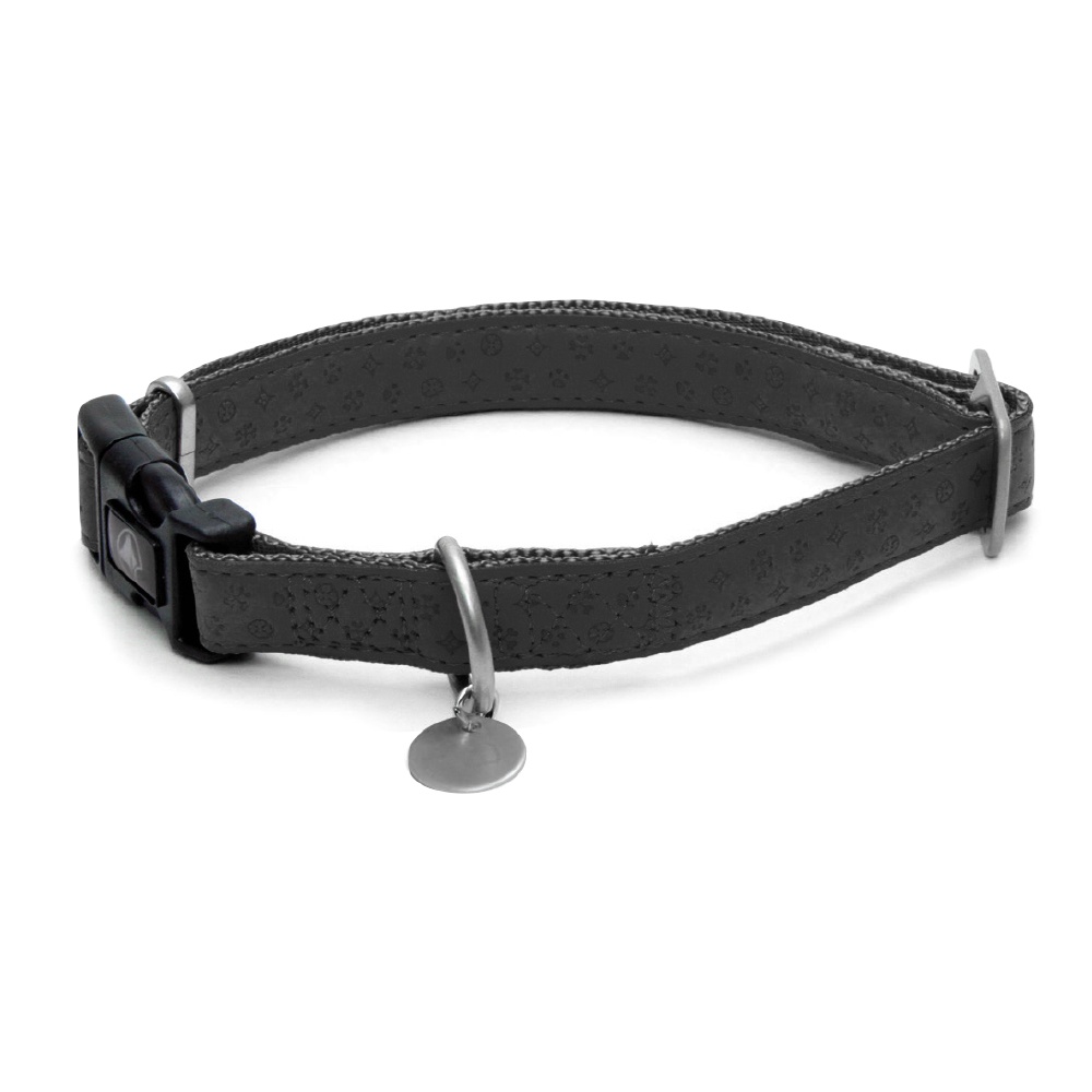 Elegantní a odolný obojek vyrobený z měkké imitace kůže s reliéfními dekoracemi.