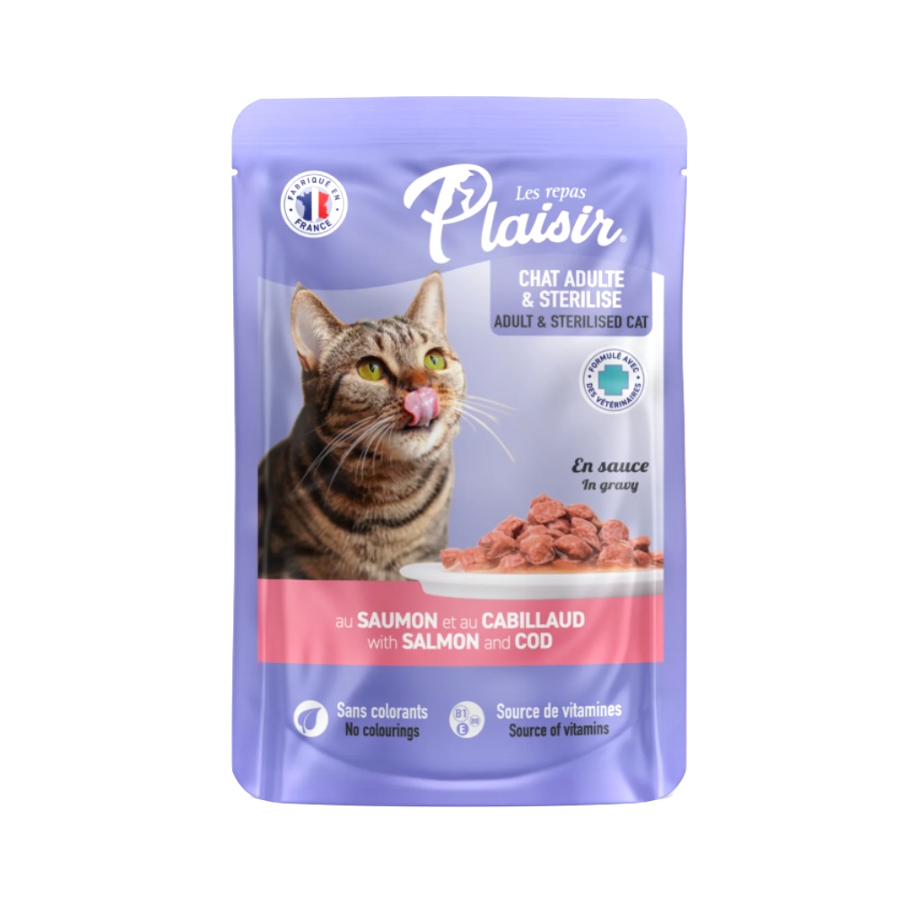 Plaisir Cat losos & treska, kapsička 100 gSkladem14 Kč