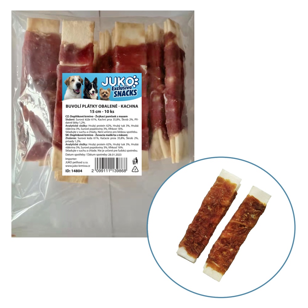 Plátky buvolí obalené kachním masem JUKO Snacks 15 cm (10 ks)