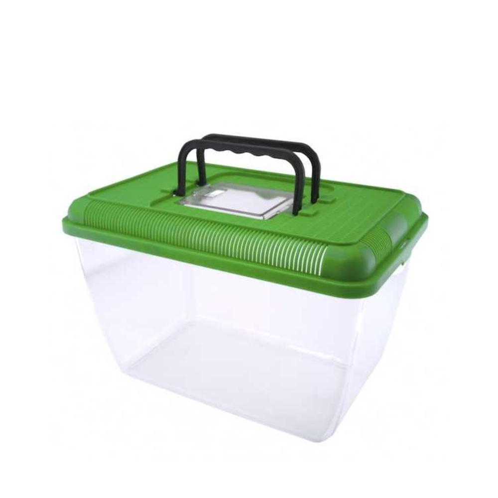 Lehký přenosný box pro terarijní zvířata, s větracími otvory ve vrchní části.