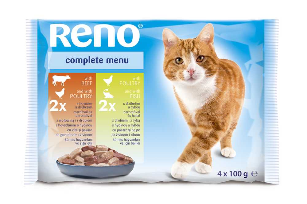 - RENO Cat hovězí / drůbeží, drůbeží / ryba, kapsa 100 g - 13 kusů po 4 kapsičkách