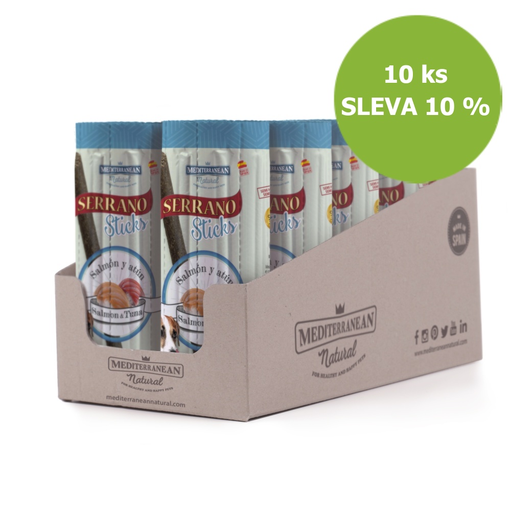 - Serrano Dog Sticks Salmon & Tuna, tyčinka 16 x 12 g (10 ks) SLEVA 10 %