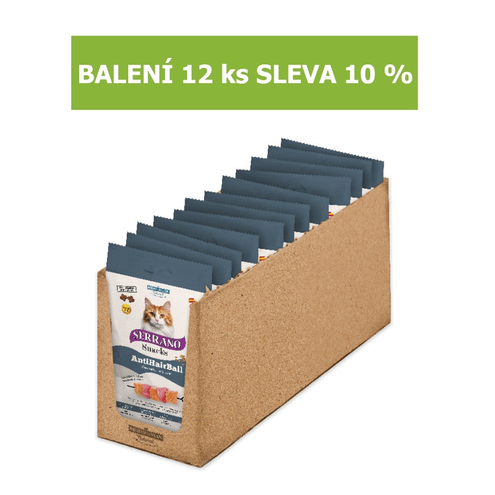 Serrano Snack Cat AntiHairball Salmon & Tuna 50 g (12 ks) SLEVA 10 %Skladem414 Kč