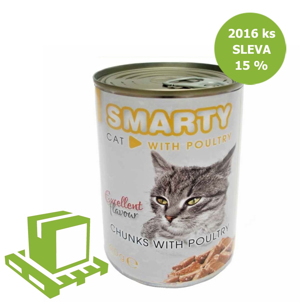 - SMARTY Cat Drůbeží chunks, konzerva 410 g (paleta 2016 ks) PALETA 15 %