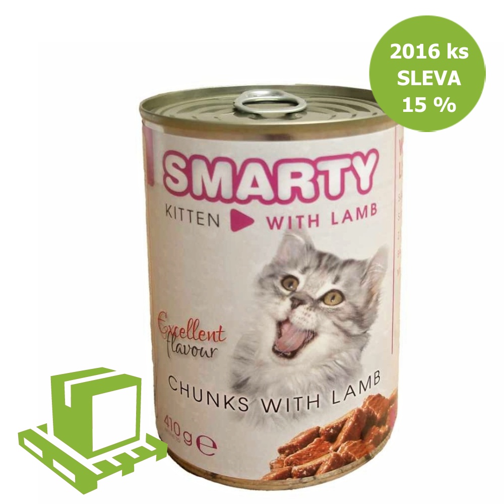 - SMARTY Cat Kitten Jehněčí chunks, konzerva 410 g (paleta 2016 ks) SLEVA 15 %