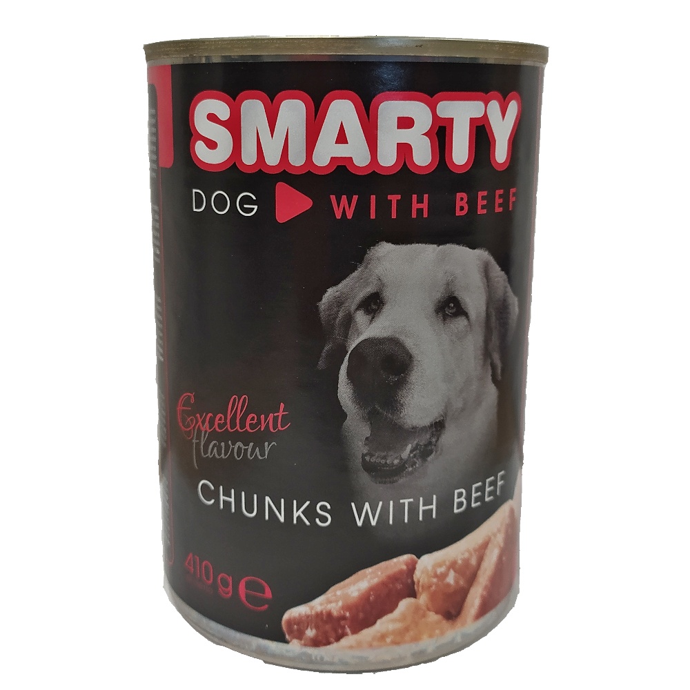 SMARTY Dog Hovězí chunks, konzerva 410 gSkladem24 Kč