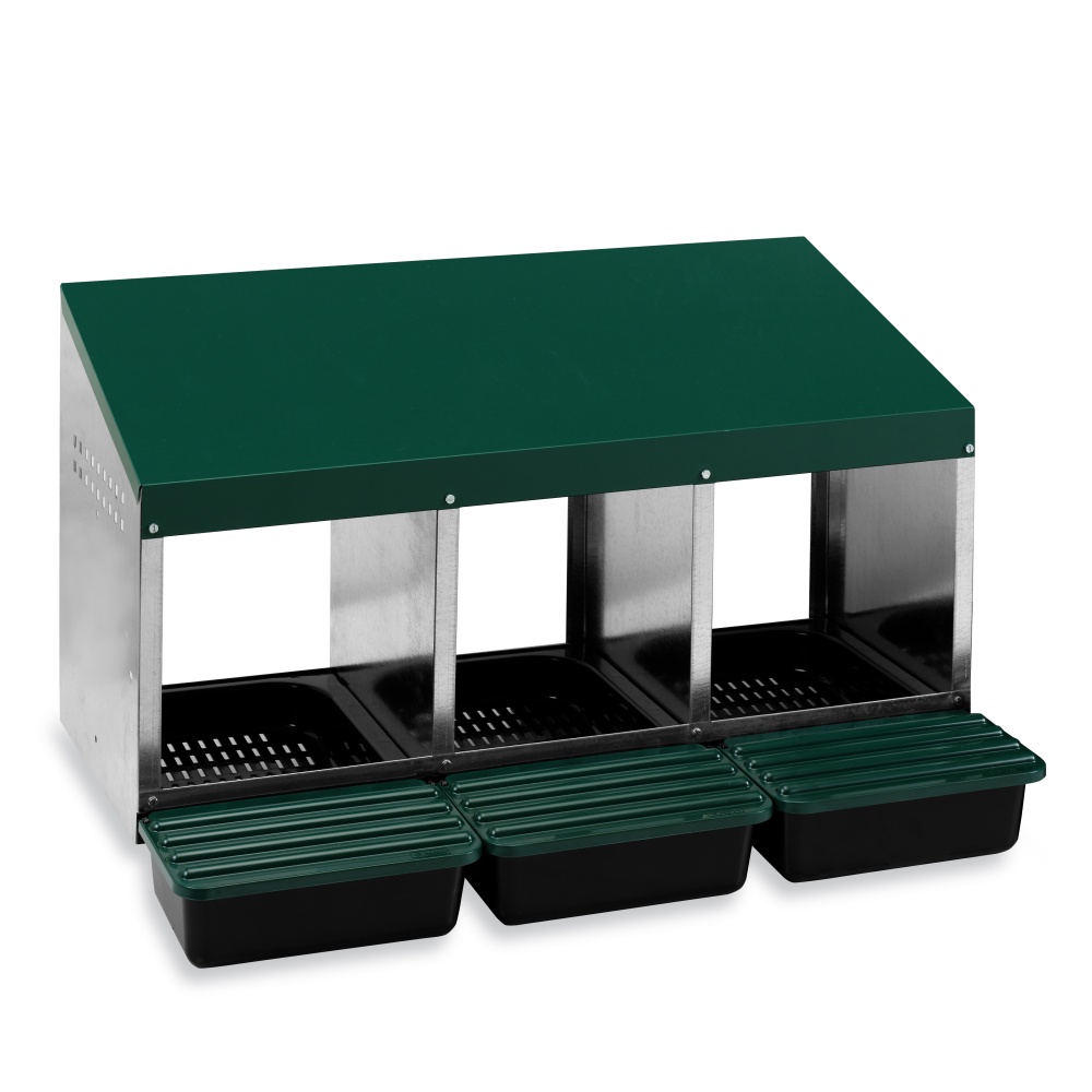 Třímístné snáškové hnízdo pro slepice.