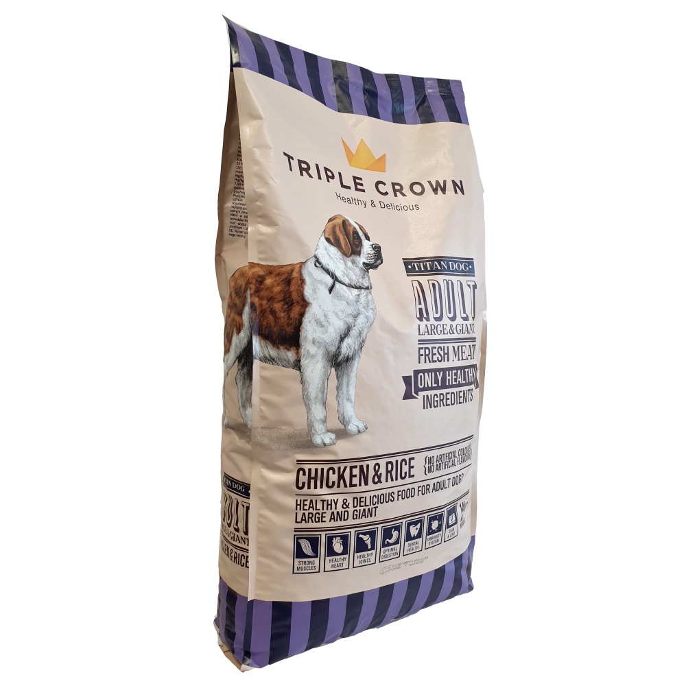 Triple Crown Dog Adult Maxi Titan obsahuje vysoce kvalitní přírodní suroviny. Vysoká hladina bílkovin, správná kombinace vitamínů a minerálů udržuje silné a zdravé kosti . Rýže, jako zdroj vysoce kvalitních sacharidů přispívá ke správnému fungování trávicího systému. Správný podíl vlákniny a kvasinek podporuje správné fungování střev. Obsah vápníku a fosforu pomáhá udržovat čisté a zdravé zuby. Vitamíny a antioxidanty, jako je vitamín E, zinek a selen, pomáhají udržovat imunitní systém v perfektním stavu.