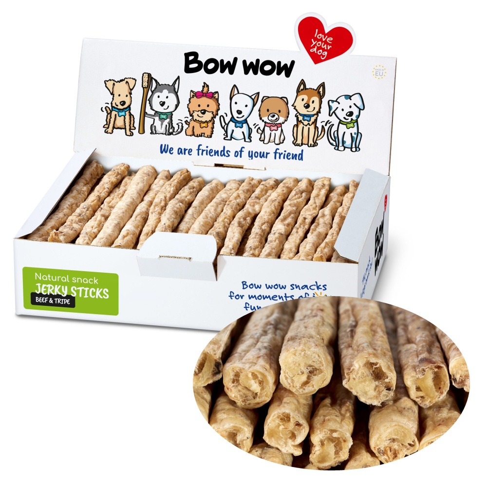 Naturální pochoutka pro psy ve tvaru tyče s hovězím a dršťkami pro silné klouby.