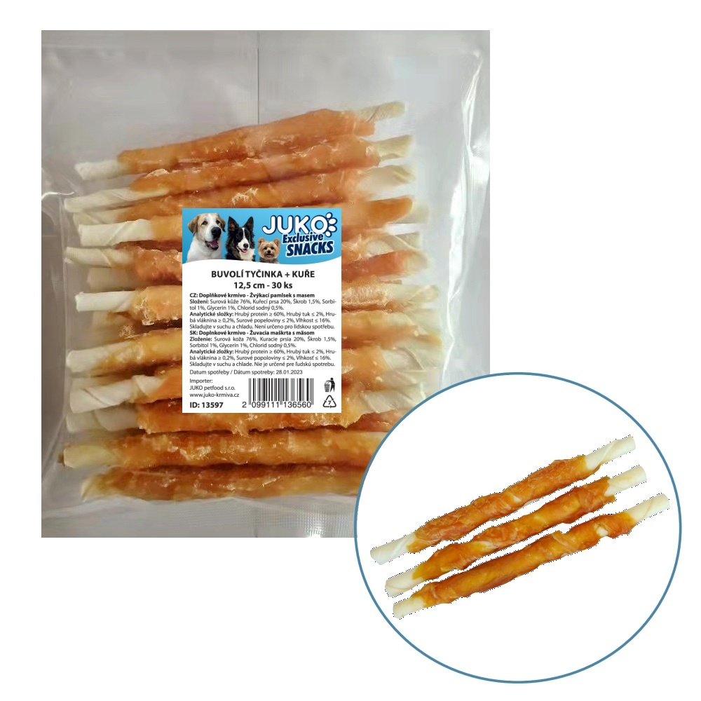 Tyčinka buvolí obalená kuřecím masem JUKO Snacks 12,5 cm (30 ks)