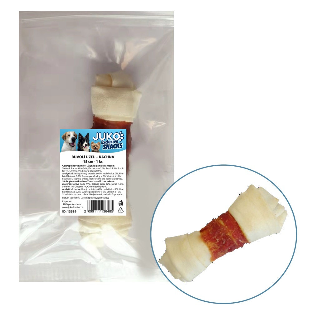 Uzel buvolí s kachním masem JUKO Snacks 15cm (1 ks)Skladem56 Kč
