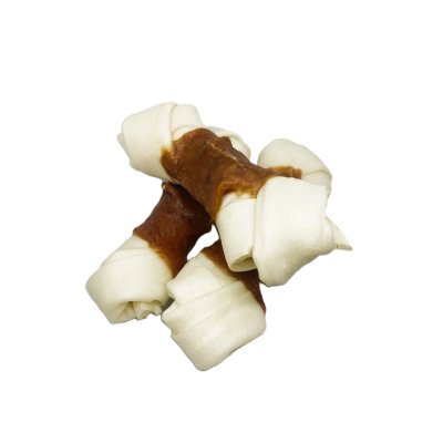 Uzlík z buvolí kůže obalený kachním masem. Velikost uzlíku je cca 10-11cm.