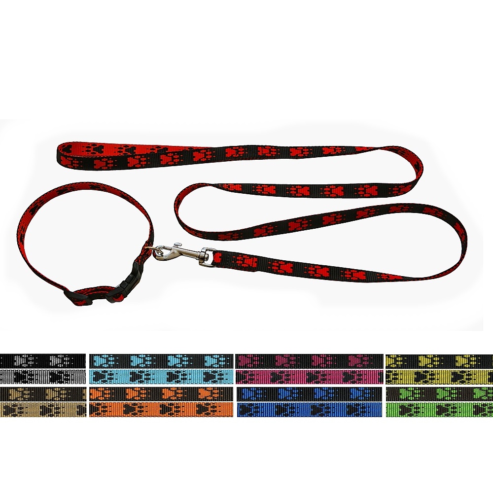 Obojek a vodítko z polypropylenového popruhu o šířce 16mm s atraktivním designem.