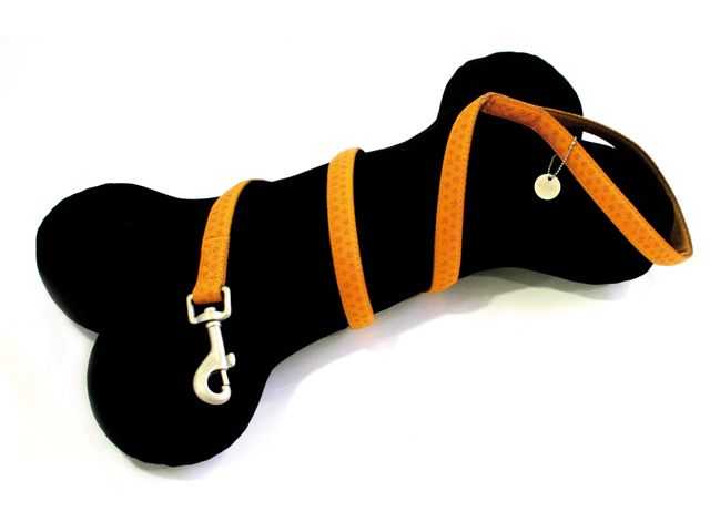 Kožené vodítko béžové barvy s celopotiskem, podšité jemným nylonem ve stejné barvě.