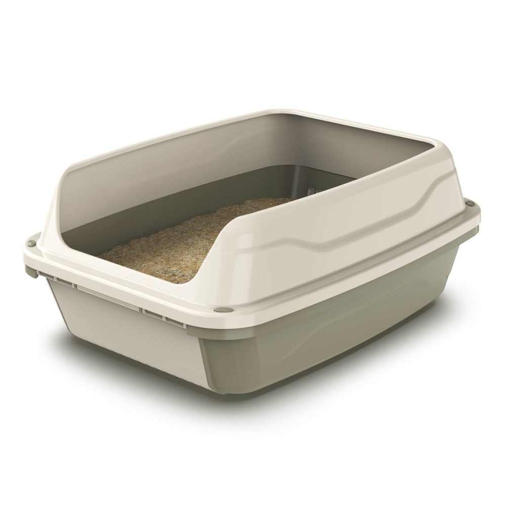 Otevřená, prostorná toaleta pro kočky s vysokým okrajem z kvalitního odolného plastu s prosévacím systémem.