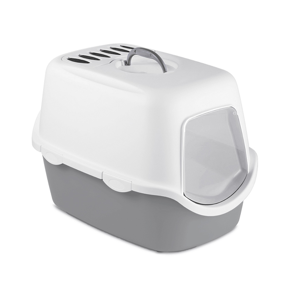 Uzavřené, prostorné wc pro kočky s dvířky z kvalitního odolného plastu. Vybavené uhlíkovým filtrem.
