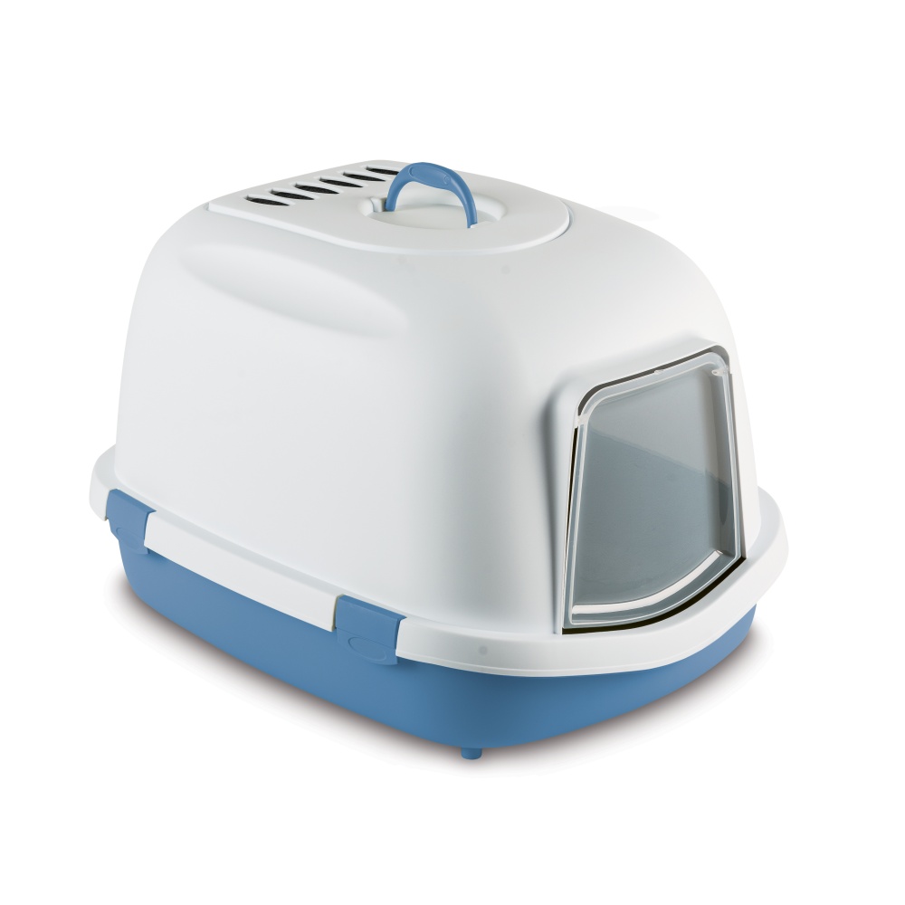 Uzavřené, prostorné wc pro kočky s dvířky z kvalitního odolného plastu. Vybavené uhlíkovým filtrem.